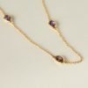 Colier din aur de 14 karate, lungime Princess, decorat cu trei zirconii colorate. Un colier casual dar care atrage privirea prin delicatețea sa veselă.